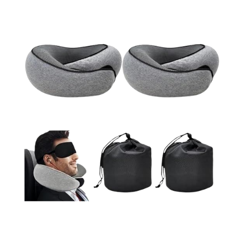 Travel Neck Pillow, Memory Foam Neck Support for Airplane, Car & Office, Breathable Portable Design with Eye Mask, Earplug Holder & Carry Bag, for Men&Women