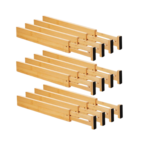 Lzerking Kitchen Drawer Dividers 6 Pack, 17-22" Adjustable Bamboo Drawer Organizers Large, Spring Loaded, Expandable Utensil Organizer, Works in Kitchen, Dresser, Closet, Bathroom, Bedroom