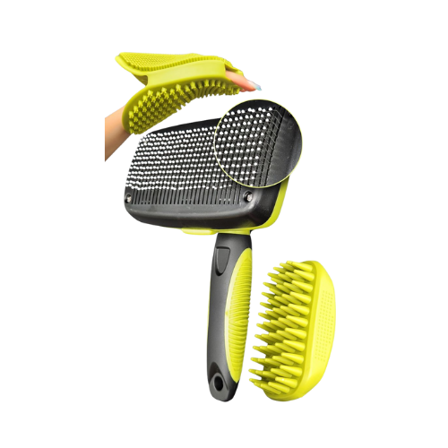 Tubby Potato™ Self Cleaning Slicker Brush - Deshedding Brush for Long and Short Haired Pets. Comfortable and Safe for Senitive Skin. Great for Dogs, Cats, and Other Small Animals- Green
